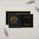 A simple minimalist black elegant design. Card features a dark grey trapezium at the left face which houses your faux gold logo of a chauffeur and its business name. On the right side, in a black background, there are two sets of light brown stripes encapsulating the top and bottom. It is here that you find your prestigious name and job title at the top, followed by the contact details near the card's floor.