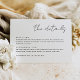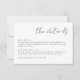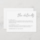 Create your own personalized modern minimalist custom Details card. Simply enter your information about Reception and Accommodations. To make advanced changes, please select "Click to customize further" option under Personalize this template.