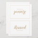 This simple minimalist|gold frame wedding reserved sign is perfect for an elegant wedding. The classic design features a basic border frame and classy gold and white typography with a modern minimal look. This reserved sign is designed to be a folded table or chair sign but arrives flat. You will need to score and fold it. QSD117