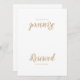 This simple minimalist|gold wedding reserved sign is perfect for an elegant wedding. The classic design features gold and white typography with a modern minimal look. This reserved sign is designed to be a folded table or chair sign but arrives flat. You will need to score and fold it. QSD114