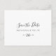 This simple minimalist horizontal save the date postcard is perfect for a rustic wedding. The simple and elegant design features classic and fancy script typography in black and white.