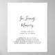 This simple minimalist in loving memory sign is perfect for a modern wedding or bridal shower. The simple and elegant design features classic and fancy script typography in black and white.
