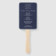Simple minimalist navy blue wedding program hand fan.