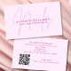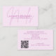Simple Minimalist Pink Script Nail Artist QR Code Business Card