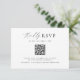 Create your own personalized modern minimalist custom online RSVP card. Simply enter your rsvp date and QR Code. To make advanced changes, please select "Click to customize further" option under Personalize this template.