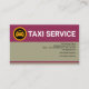 A retro design featuring two rectangle columns as a background cover. At the upper red portion, you have the yellow taxi logo and the oversize slogan "TAXI SERVICE" which you can change to suit your service needs. Just below this are your prestigious name and job title. In the grey portion lies the contact details and another slogan option to advertise your services.