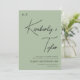 Plain white envelopes are included with paper invitations and will come to fit the invitation size you select. If you don’t need the envelopes, you may choose to not receive them by selecting the dropdown below "Envelopes" and choosing "None." If you’d like to have a design on your envelopes, you can browse all of these available envelopes to find the design that complements your Simple Minimalist Sage Green Script Wedding Invitation.