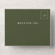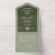 Introducing our classic all-in-one invitation featuring a sage green on olive green color palette with cream text. This invitation is perfect for couples seeking a sleek, minimalist and classic aesthetic for their special day. The highlight of this invitation is the convenient QR code, allowing guests to RSVP effortlessly using their smartphones. For traditionalists, we've included a traditional paper RSVP option as well. With the all-in-one design, guests can easily tear away the RSVP section and send it back. Additionally, we've provided email information for RSVPs, ensuring a seamless and convenient RSVP process.