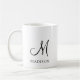 A simple modern minimalist monogram black script initial with serif name coffee mug.