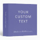 This stylish custom binder features a simple minimalist design of your text and name in a beautiful handwritten script lettering in periwinkle purple.