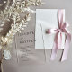 This elegant minimalist acrylic wedding invitation features a blend of modern script, serif, and sans serif fonts. To customize this design with your own wording, please use the "Edit this design" box located on the right side. For custom requests, feel free to email me at susan@susannewberrydesigns.com.
