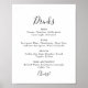 This simple minimalist wedding drinks menu sign is perfect for a modern wedding. The simple and elegant design features classic and fancy script typography in black and white.