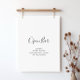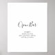 This simple minimalist wedding open bar sign is perfect for a modern wedding. The simple and elegant design features classic and fancy script typography in black and white.