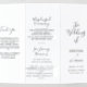 This simple minimalist wedding program brochures are perfect for a modern wedding. The simple and elegant design features classic and fancy script typography in black and white.