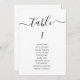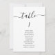 Simple black and white fully editable table seating card featuring a heading, table number and list of guests name.