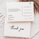 This simple minimalist wedding thank you postcard is perfect for your elegant modern wedding. This design features black simple script on a neutral bright white background to match your classic traditional wedding or minimalist boho wedding in the spring, summer, fall, or winter. Please feel free to reach out to us with any questions about this design.