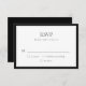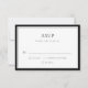 Black and white simple minimalist with border wedding RSVP response card. Block and lower case traditional text within a thin black border. Back is black. To adjust the layout, click Personalize It, Edit Text, then click and drag text sections to desired locations. Select Cntrl to move multiple sections at once.