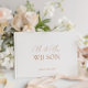 This elegantly designed guest book features a timeless black and white color scheme, embodying simplicity and sophistication. With its minimalist aesthetic, it provides a perfect canvas for your guests to share their heartfelt wishes and congratulations. Designed to coordinate with for the «Chloe» Wedding Invitation Collection. View the collection link on this page to see all of the matching items in this beautiful design.