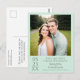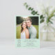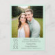 This pale neo mint green postcard is the perfect way to let your friends and family know about your upcoming wedding. Features a simple minimalist design with is artsy, modern, and elegant including your photo with gray text containing all of the vital information.