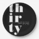 Simple elegant 30th birthday party paper plates featuring bold typography and minimalist design.