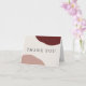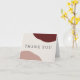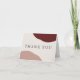 The color scheme in this Thank You Card is perfect for a fall wedding with its color combination of burgundy wine red and earthy terra-cotta in simple abstract shapes on opposite sides of the design. Elegant type face spells out the words "Thank You" on the front of the card. A sample text template on the inside of the card may be personalized with your own words, or you can also delete the inside sample text if you wish to hand-write your thank you notes.