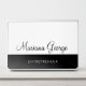 Modern laptop skin with a simple design featuring your name in an elegant black script over a black block with your title in white inside. A basic and minimalist design that is great a business professional including a photographer, real estate agent, interior designer and more.