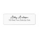 Simple, modern, minimalist and very elegant black script typography on white background return address labels, Chic, custom made and personalized with your name and address.
