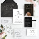 The wedding invitation and suite features a classic white and black color palette and options, which exudes sophistication and timelessness. The clean, minimalist design ensures that your names take center stage, beautifully showcased in elegant typography that captures attention and sets the tone for your special day.