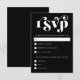 This simple modern wedding RSVP invitation has an elegant, decorative serif font and classic standard typographic fonts (Futura and Garamond Italic).