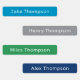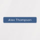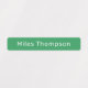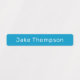 Clean and colorful personalized name labels in a modern rounded rectangle design featuring shades of blue and green. Each label displays the child's name in crisp white text. Made from durable, waterproof vinyl that's dishwasher, microwave, and laundry safe with a super-strong adhesive. Perfect for school supplies, water bottles, and lunch boxes. Customize with your child's name.