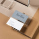 Elegant, minimalistic modern design with a blue-gray and white reversible background. Simple professional card design.