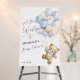 Welcome guests to your baby boy's shower with this charming teddy bear-themed welcome sign. The design features a delightful color palette of blue and beige, perfect for celebrating the arrival of a baby boy. The sign showcases a simple, modern design style with elegant modern calligraphy font, adding a touch of sophistication to your event.
