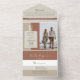 Elegant, modern boho, simple, contemporary neutral earth tones and terracotta wedding all-in-one invitation, with giant monogram initials and two pictures of the couple.