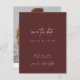 Announce your wedding date in style with this simple modern burgundy save the date card. Featuring elegant handwritten script, minimalist typography, and a customizable photo, this design is perfect for contemporary weddings in any season — spring, summer, fall, or winter. Personalize the names, date, and details to create a unique keepsake that coordinates with the Aurora Wedding Collection.
