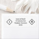 Return address design featuring diamond shapes on either side flanking your return address with couple's initials inside the diamonds. All colors can be modified as desired. Design by Holiday Hearts Designs (rights reserved).