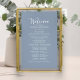 This poster was great to inform our guests about the timeline of the big day. We had it outside the banquet hall for everyone to see as they arrived. The font, color, and size were legible, pretty, and just right.
