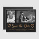 Modern faux copper glitter calligraphy script balck save the date wedding magnetic card with 2 photos collage - one vertical / portrait oriented and the other horizontal / landscape. and two doddle hearts. ++++++++++++++ Personalize it with your photos, names and wedding date!