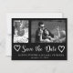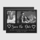 Modern black and white brush script fancy save the date wedding with 2 photos collage - one vertical / portrait oriented and the other horizontal / landscape and two doddle hearts. ++++++++++++++ Personalize it with your photos, names and wedding date!
