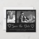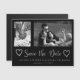 Modern faux silver glitter grey brush script black save the date wedding magnetic card with 2 photos collage - one vertical / portrait oriented and the other horizontal / landscape and two doddle hearts. ++++++++++++++ Personalize it with your photos, names and wedding date!