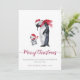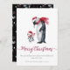 Simple Modern Christmas Penguin Botanical Holiday Card
