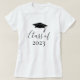 Simplistic modern white grad t shirt with the caption, class of 23 with a tassle topper for added effect.