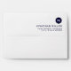 Simple envelope with navy blue classic monogram medallion and return address on the back flap. Customize your envelopes with your monogram initial, name and return address.