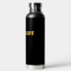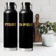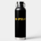 Simple Modern ‘CO-PILOT’ Typography in gold font on a black Water Bottle. Text can be customized to a different word.