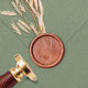 Before the wax hardens, gently and evenly press the wax seal stamp into the melted wax, ensuring it's centered.
