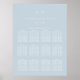 This minimalist and modern wedding seating chart features modern lettering in white on a dusty blue background. You can find matching products at my store.