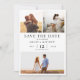 Create your own wedding save the date cards featuring 3 of your favorite photos. Modern typography design with simple 3 photo collage.