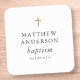 Simple Modern Elegant Cross Baby Baptism Square Sticker