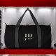 A classic elegant look in black and off-white, this custom duffel bag makes a wonderful gift or treat for yourself. It has large monogram initials to personalize with your desired initials and also the name spelled out in elegant serif type face. It makes a great choice for visits to the gym, overnight travel, and sports activities.