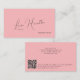 Elegant modern handwritten calligraphy signature script name generic pink and black business card template with scanning QR code to website, catalog, or portfolio. Suitable for beauty professionals: makeup artists, hairstylists, nail technicians, lashes and brows specialists, influencers, personal stylists, or lifestyle bloggers.