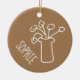 Lightweight, smooth, pure white ornament with nice sheen. Perfect size to be seen from across the room ... and to attract closer inspection! Price was great for ordering enough for the whole family! Clear, bold black design just as requested. Matches the order exactly. Just so nice!